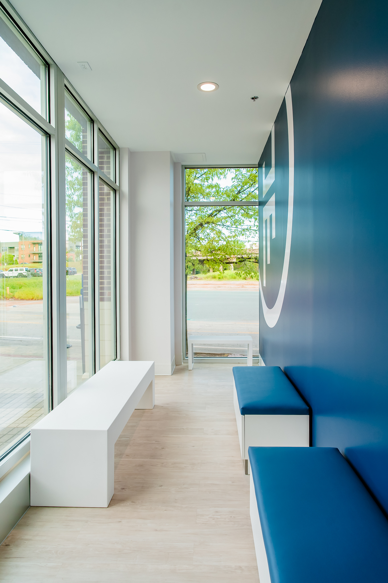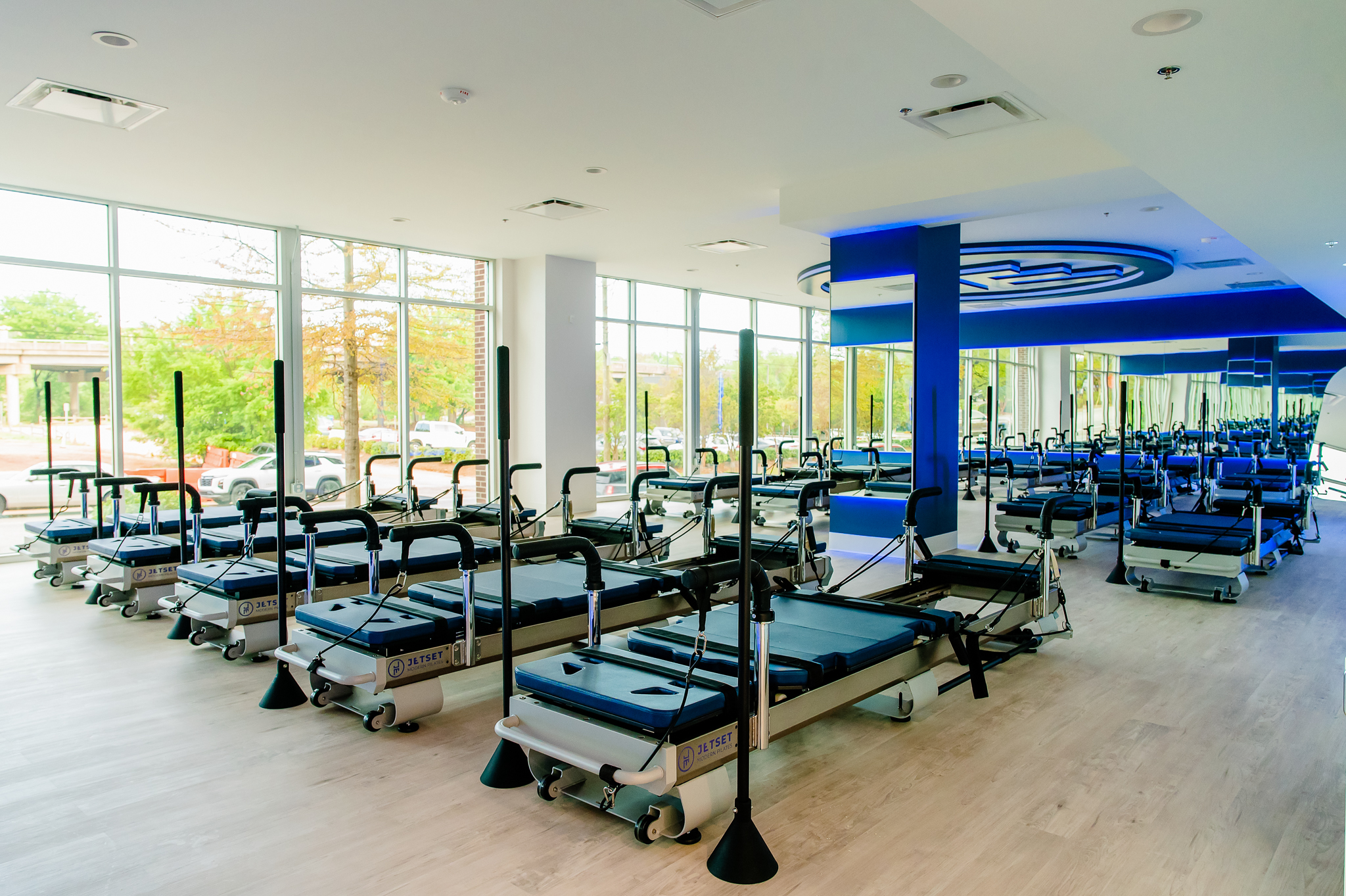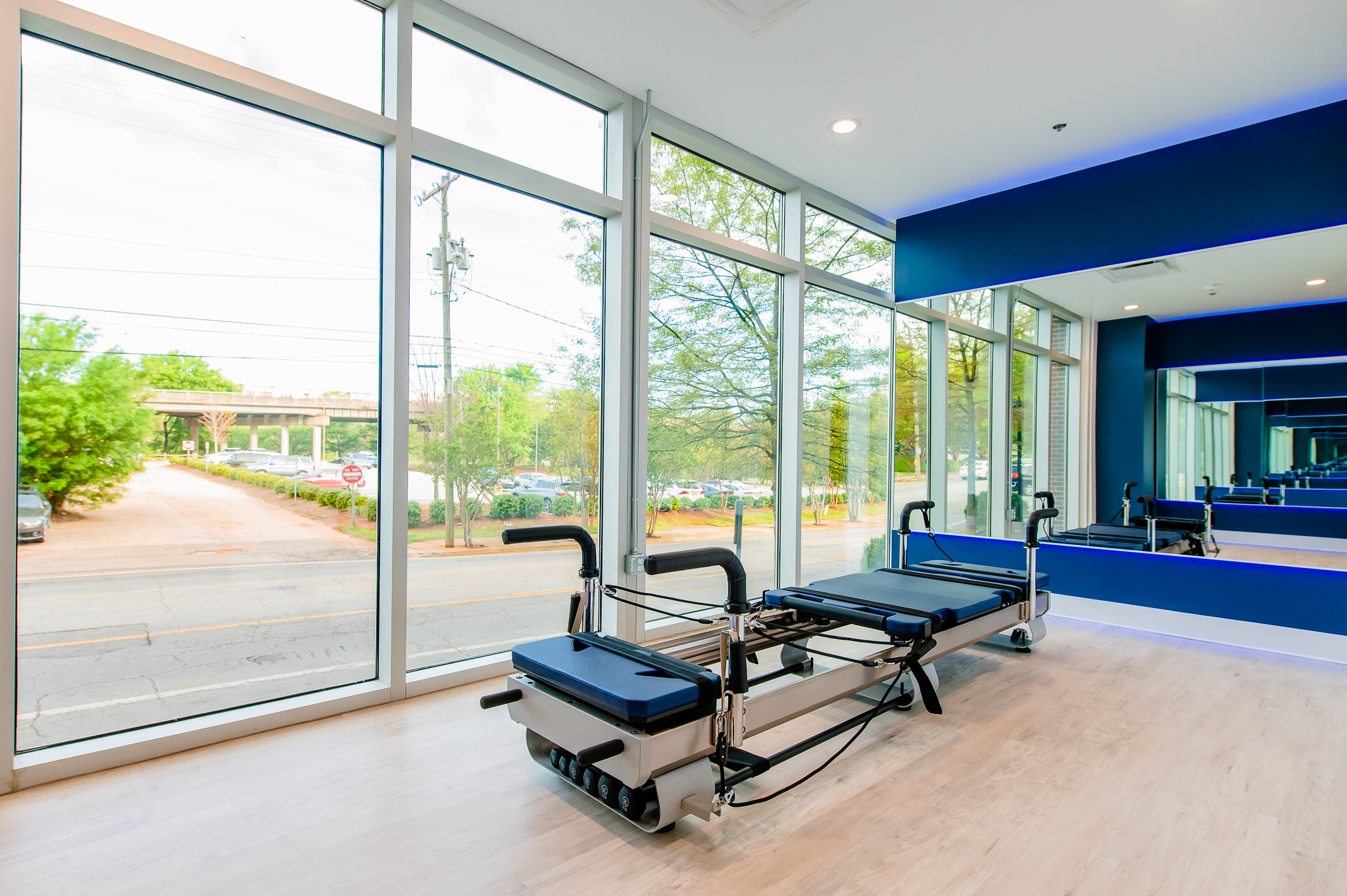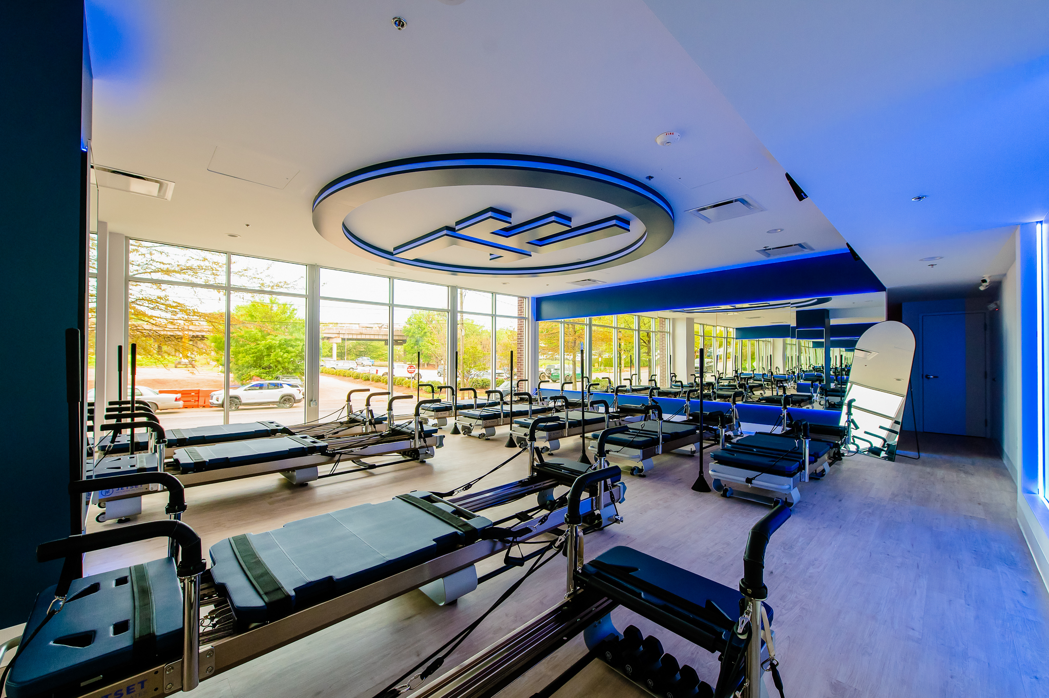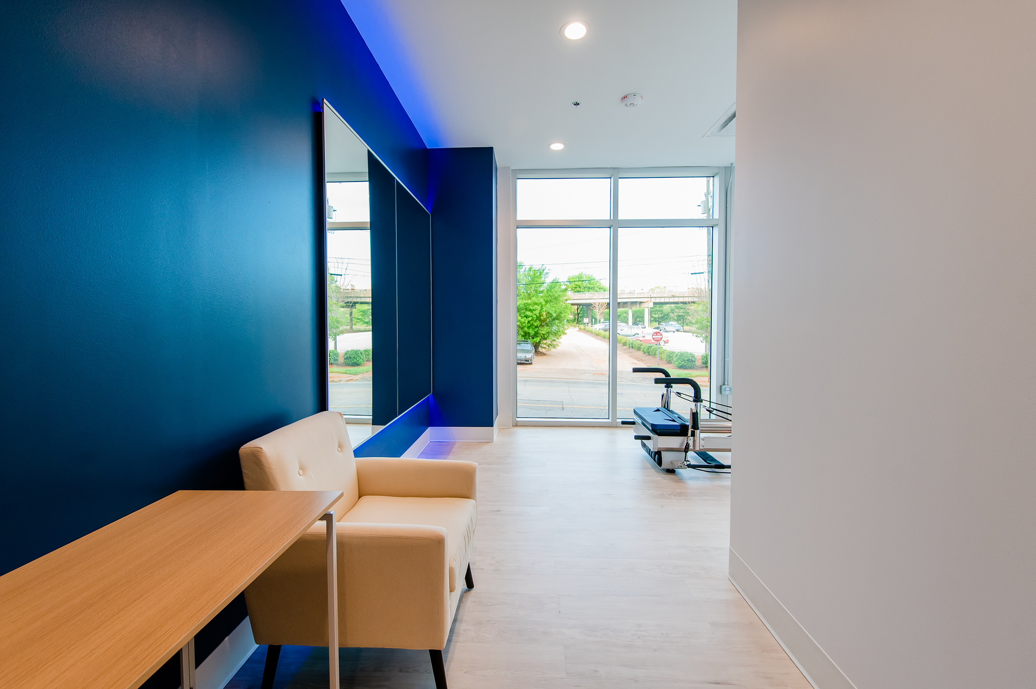 3,000 sq ft interior up-fit of an existing vacant shell space located underneath the Embassy Suites Hotel in Downtown Greenville. Project consists of a large open studio area with a perimeter mirror wall, private room, restrooms & lobby/reception area.